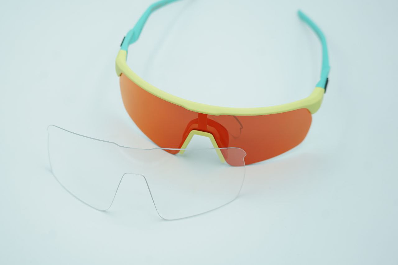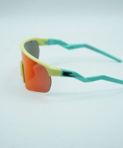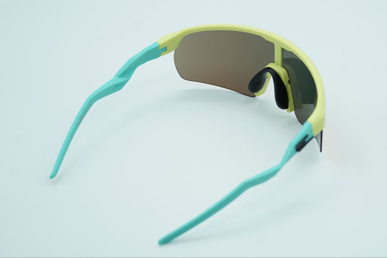 DL-EVO DRAFT Montatura gialla opaca, aste verde acqua opache, lente viola specchiata