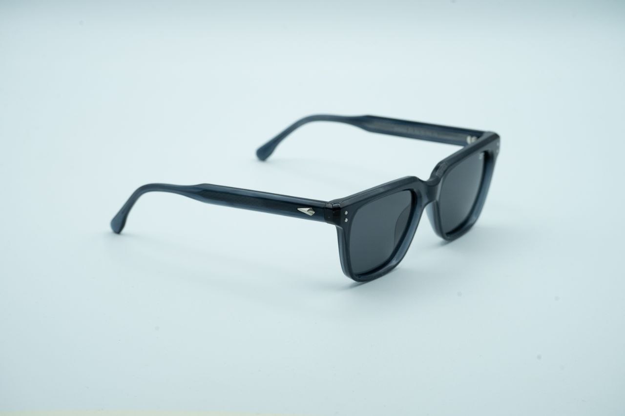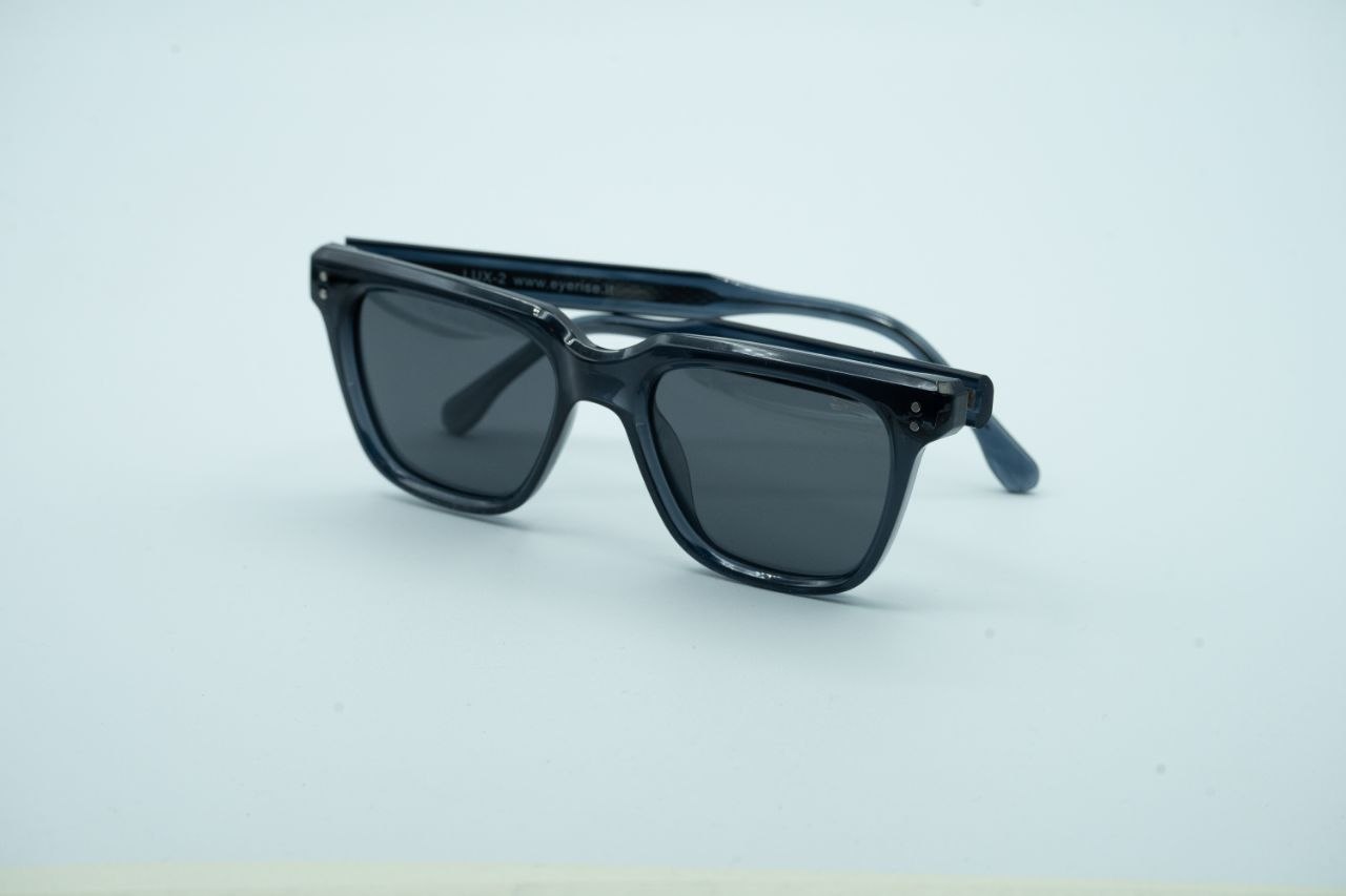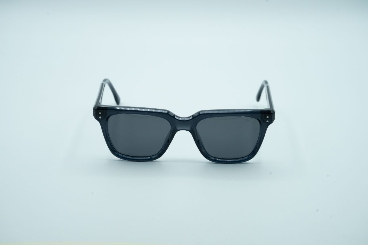 Occhiali monocolore blue scuro, lenti fumo polarizzate.