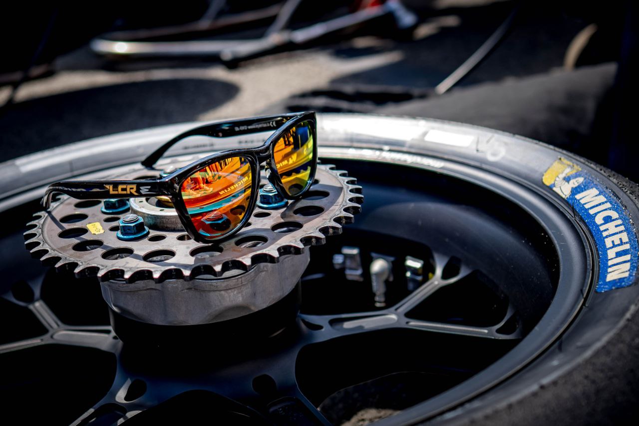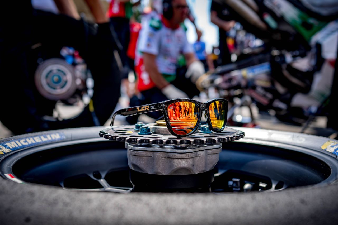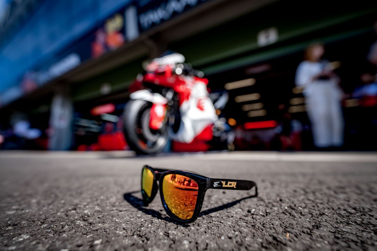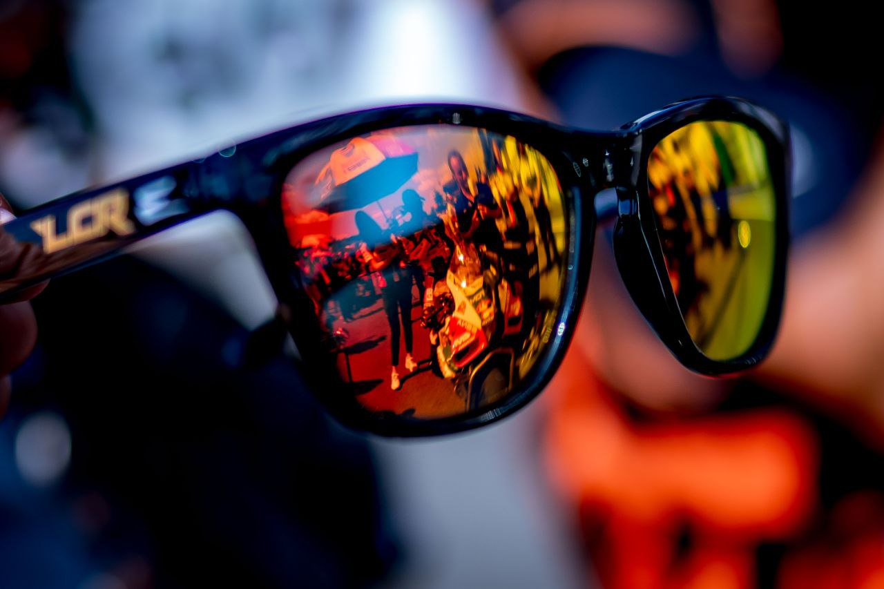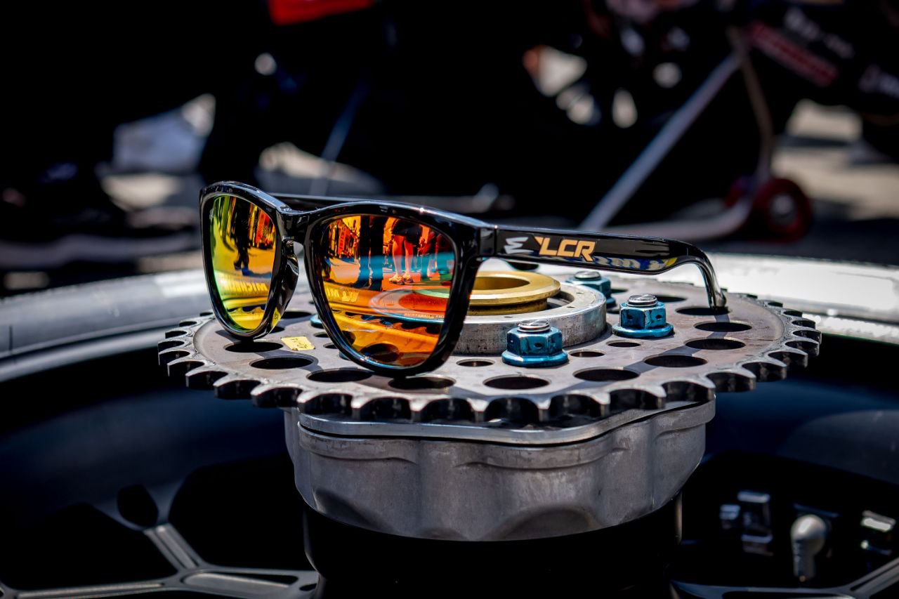 Montatura trasparente lucida tiffany, lente polarizzata dark.