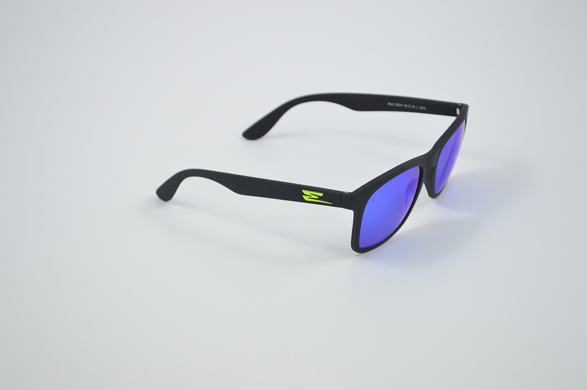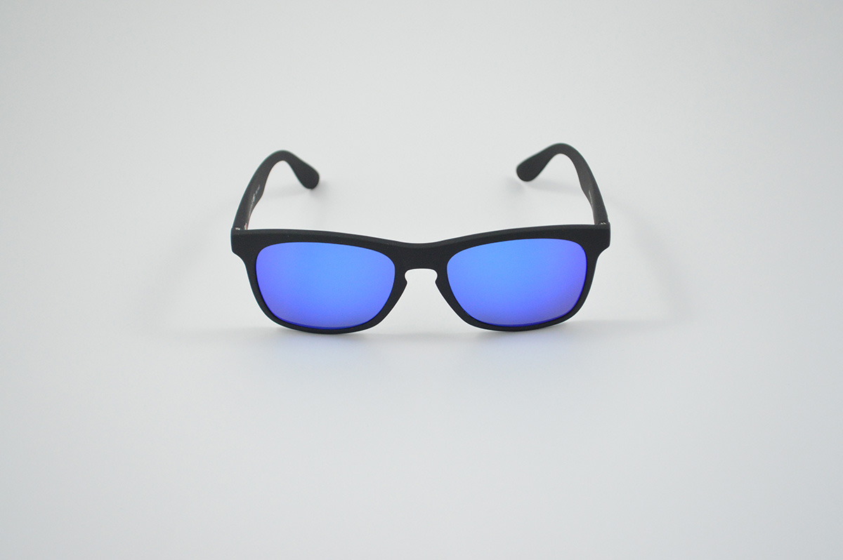 TOTAL BLACK GLASSES, SPARKLING BLUE LENS.