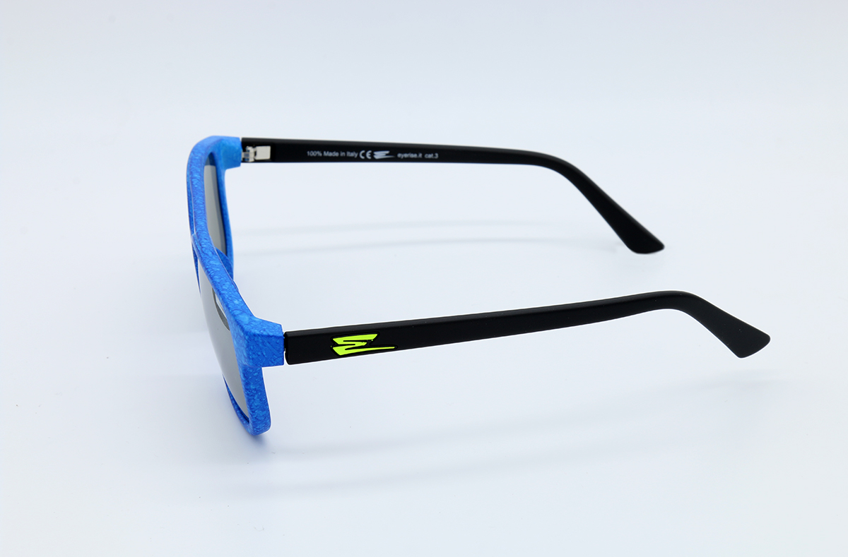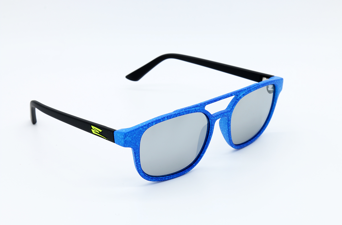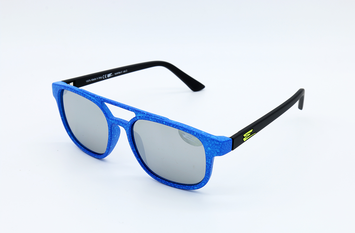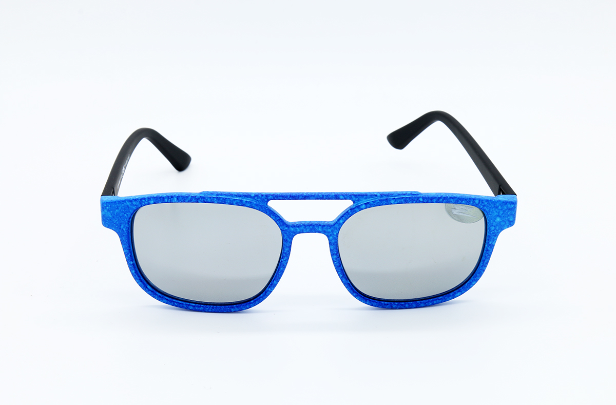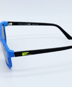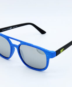BLUE COLOR BASE WITH WHITE SHADES, DOUBLE BRIDGE AND MIRRORED LENS REVO MIRROR, total black temples.